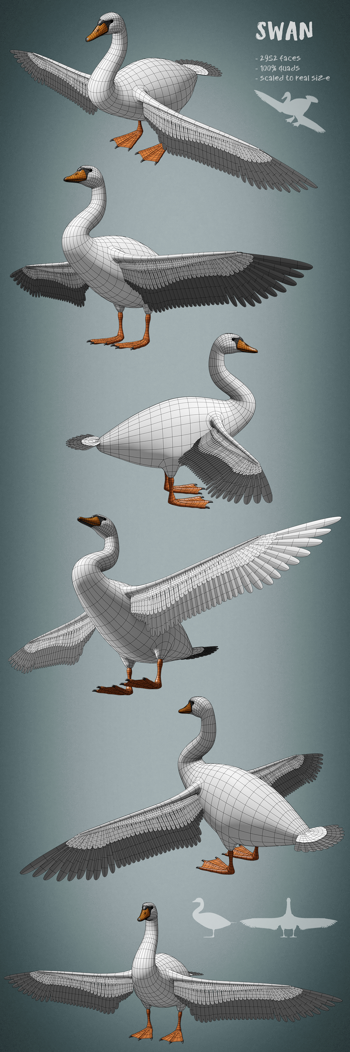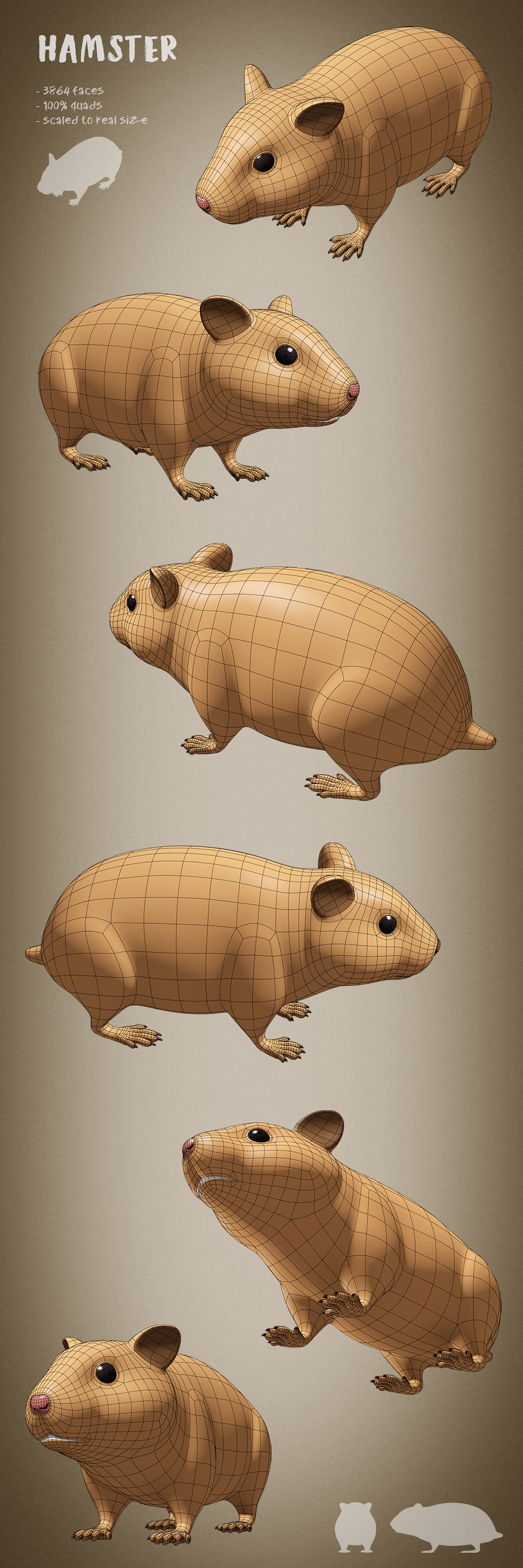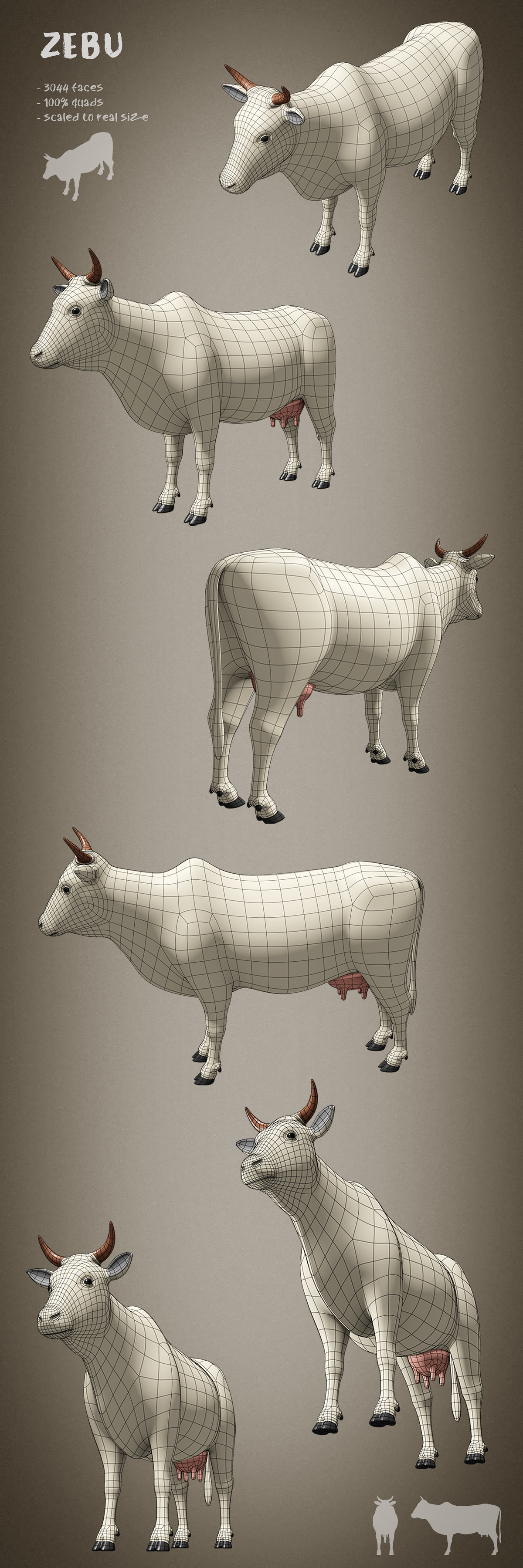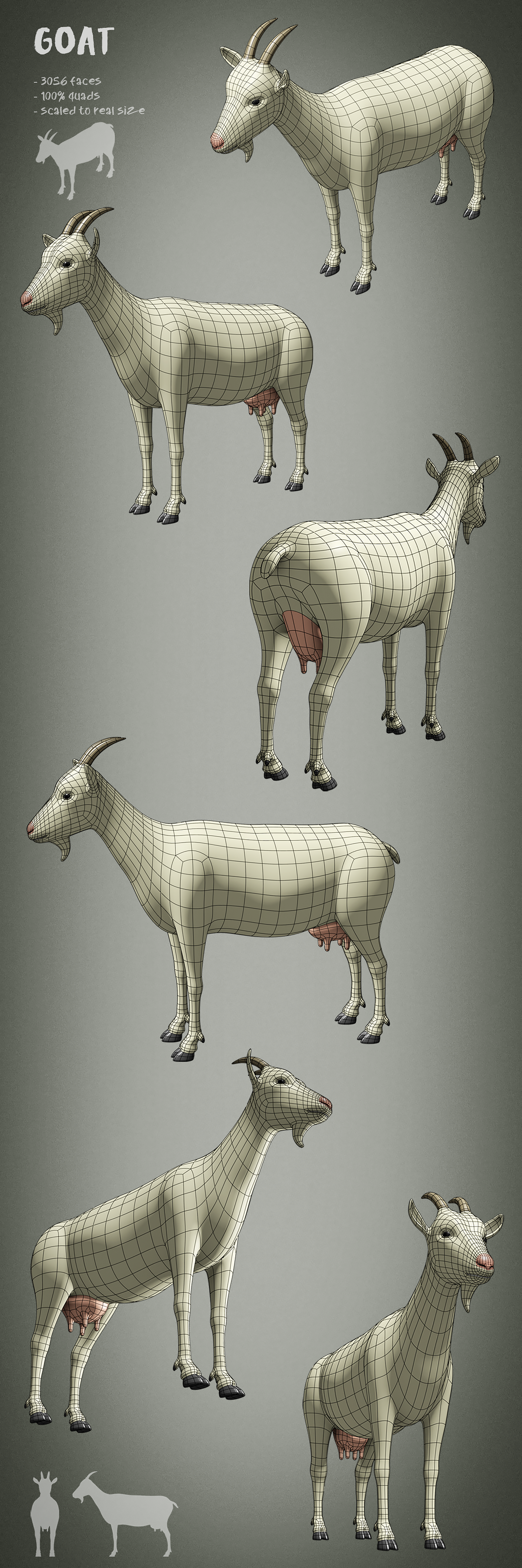 From Ant, through a pair of Love birds, to Elephant. The ultimate collection of most popular domestic animals base meshes is here! Consists of 100 animals that are domesticated/tamed by man. Includes the most popular farm animals and pets.