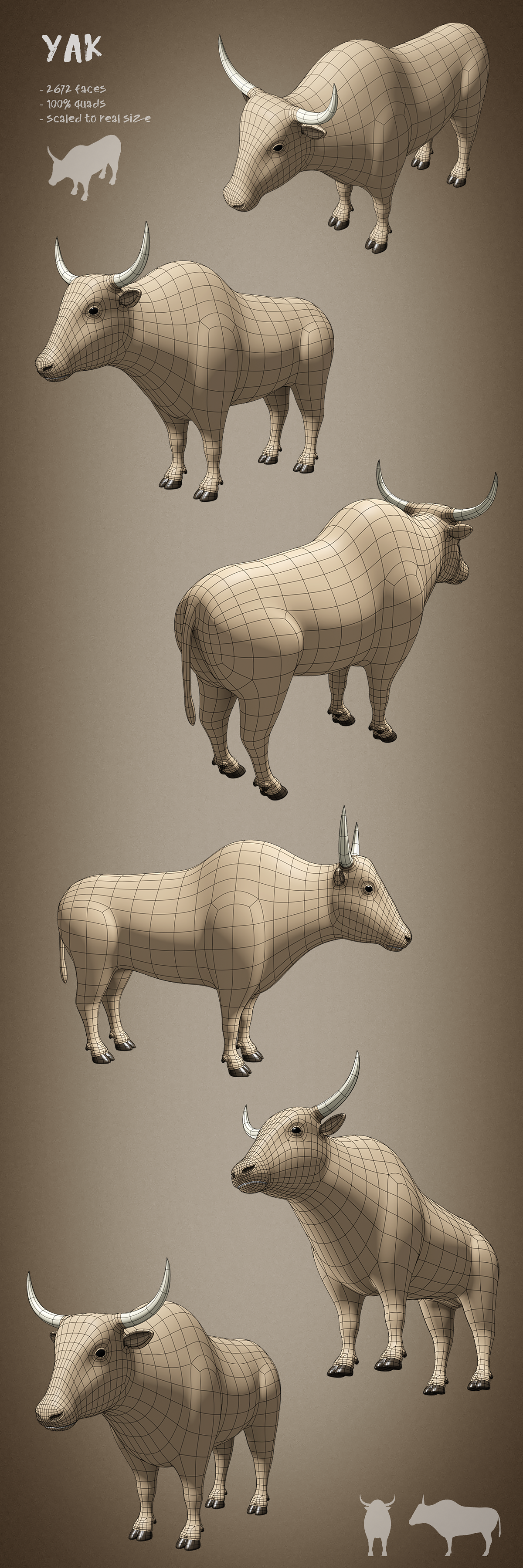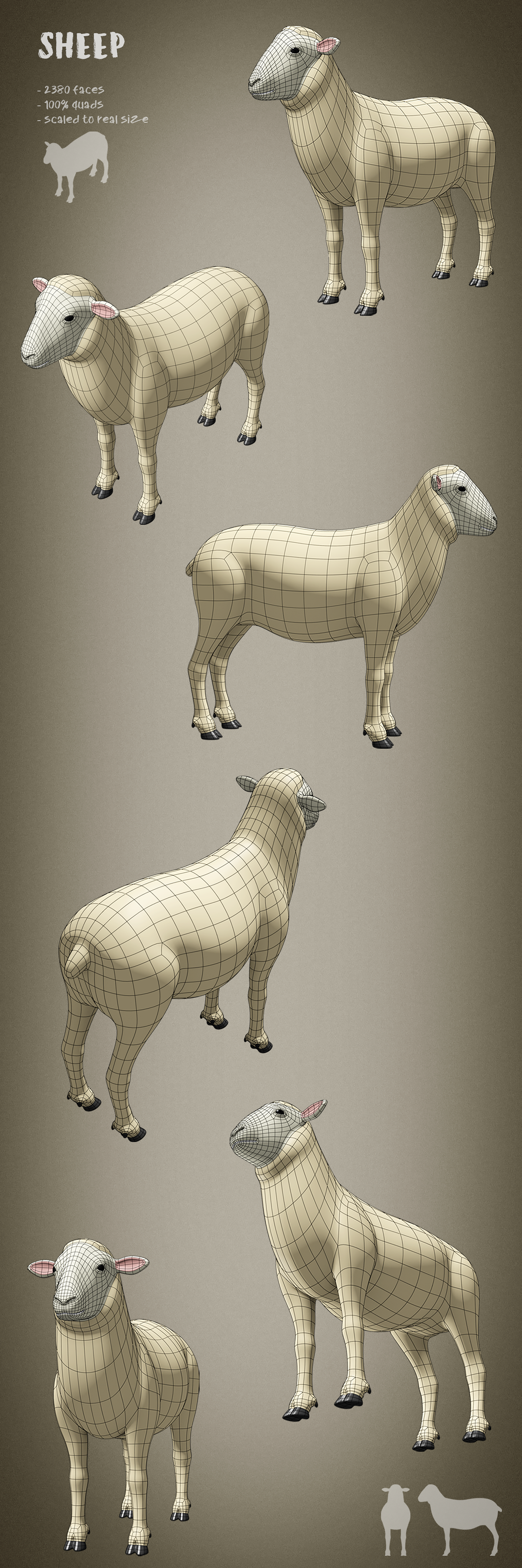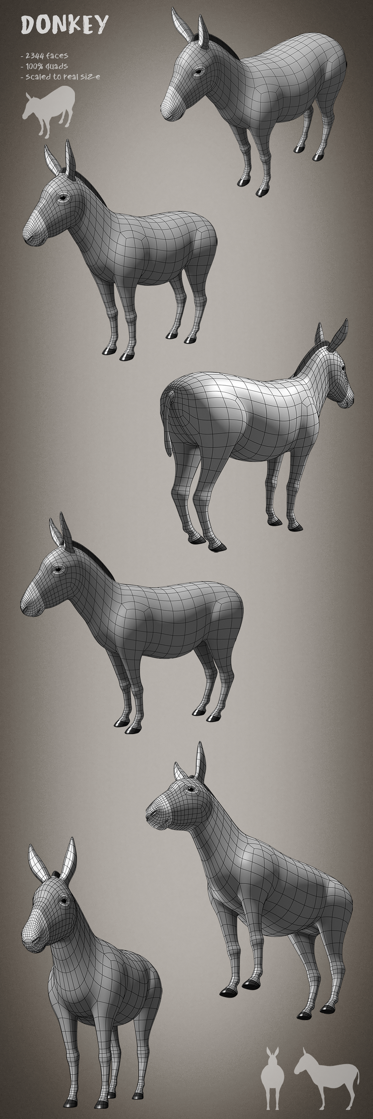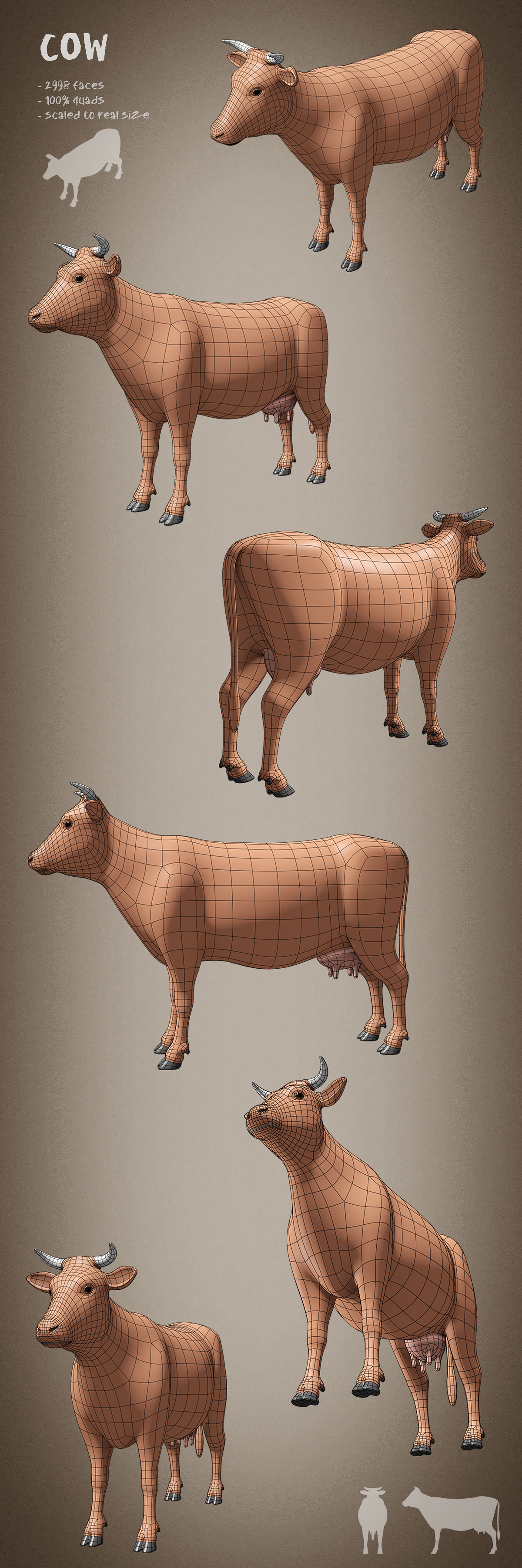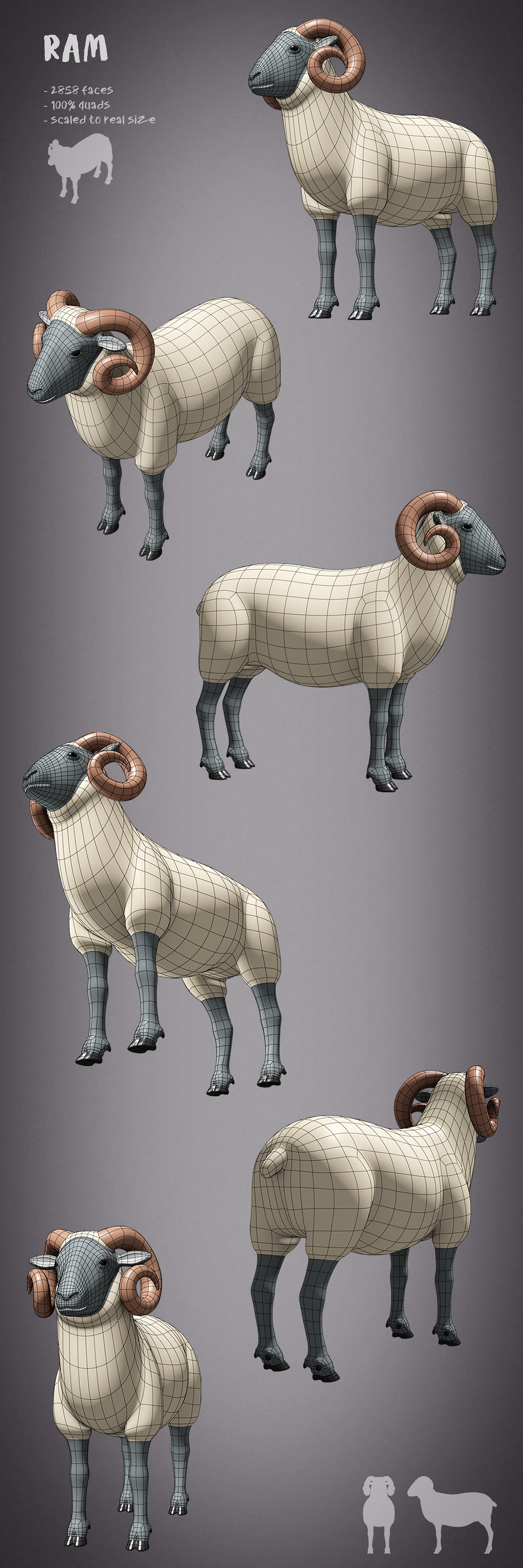 From Ant, through a pair of Love birds, to Elephant. The ultimate collection of most popular domestic animals base meshes is here! Consists of 100 animals that are domesticated/tamed by man. Includes the most popular farm animals and pets.