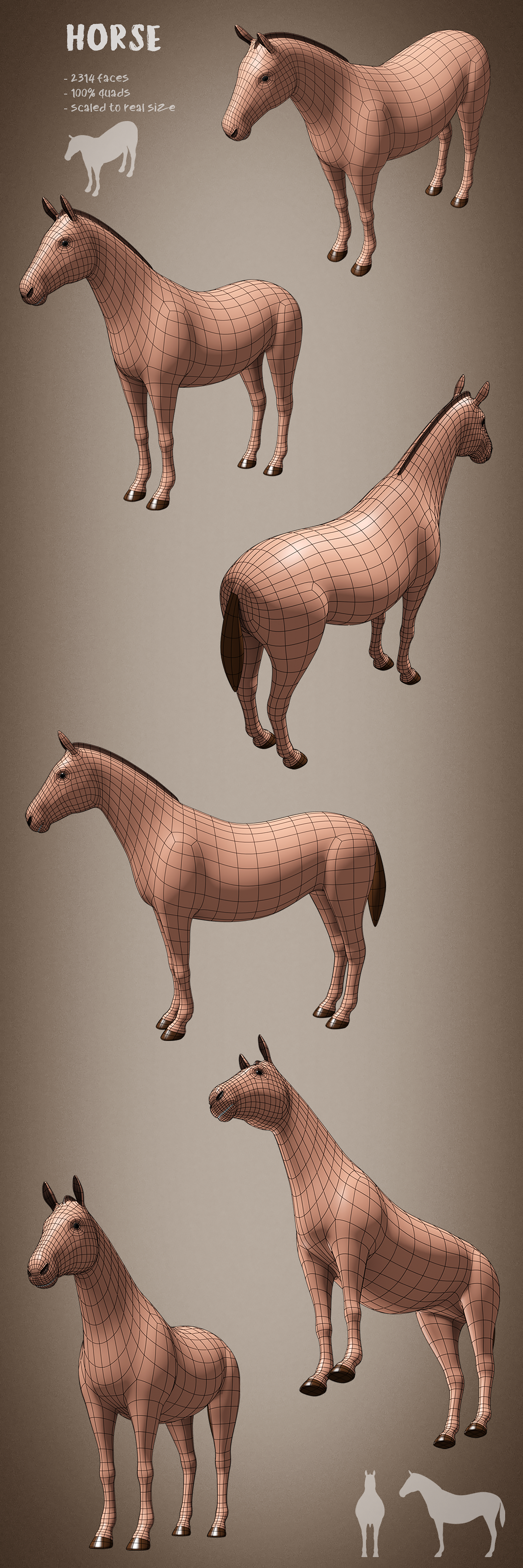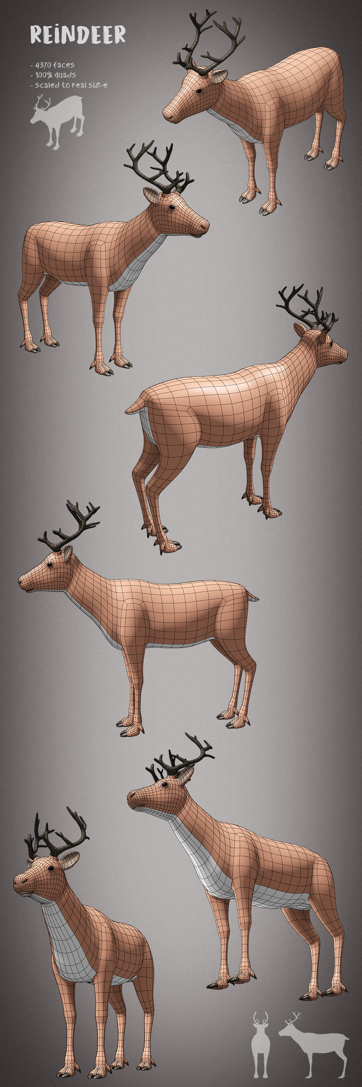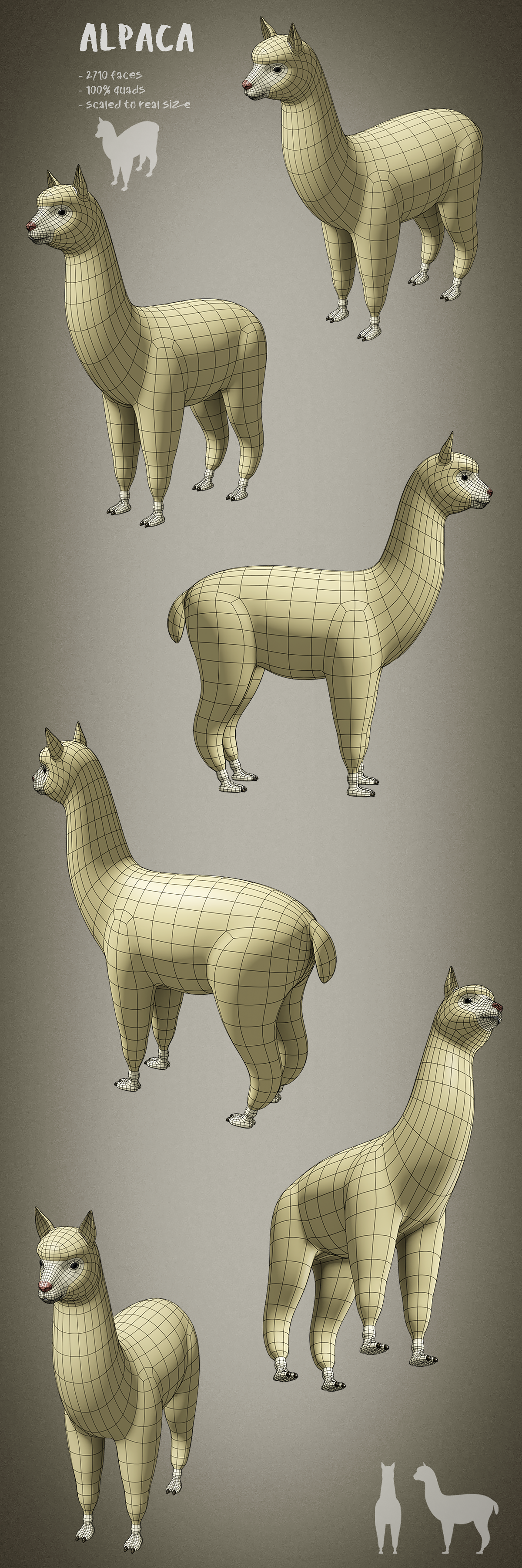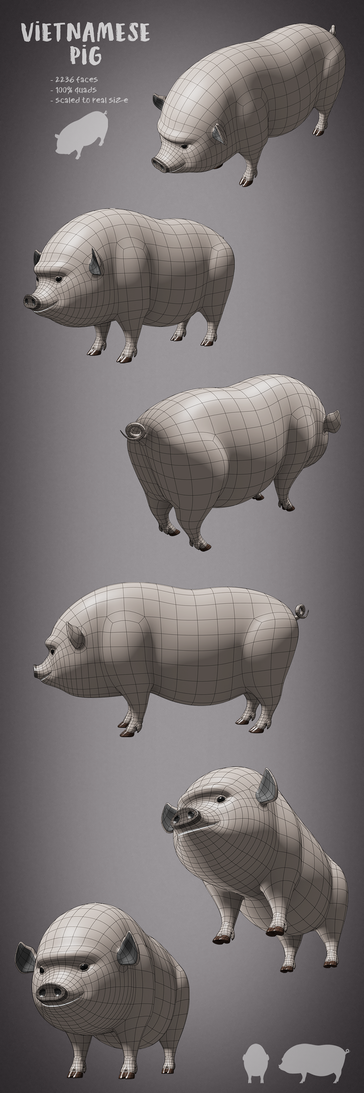 From Ant, through a pair of Love birds, to Elephant. The ultimate collection of most popular domestic animals base meshes is here! Consists of 100 animals that are domesticated/tamed by man. Includes the most popular farm animals and pets.