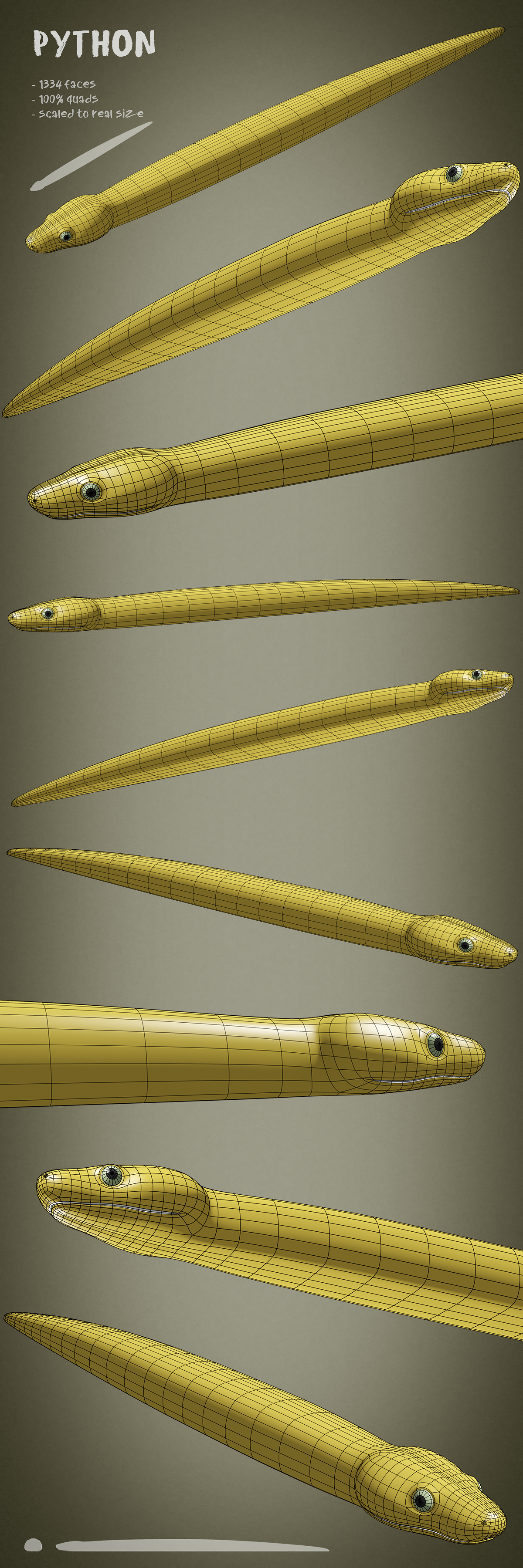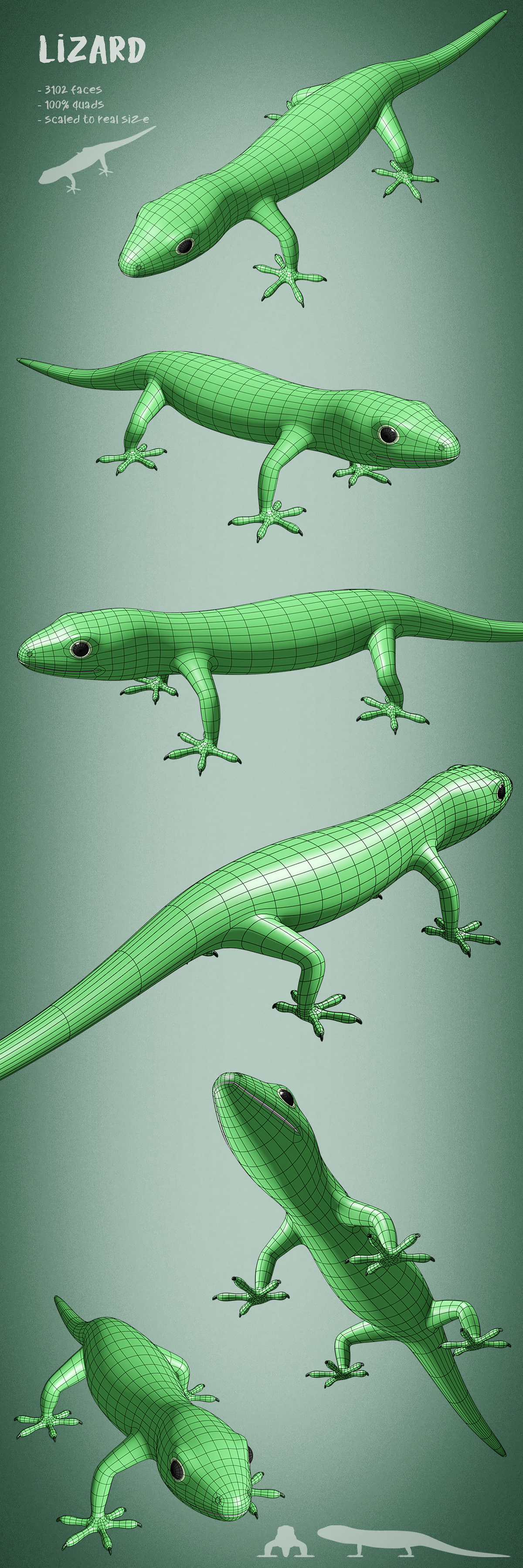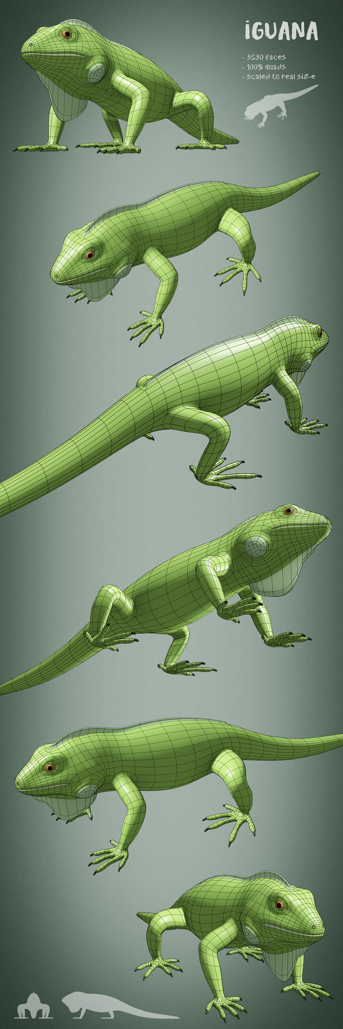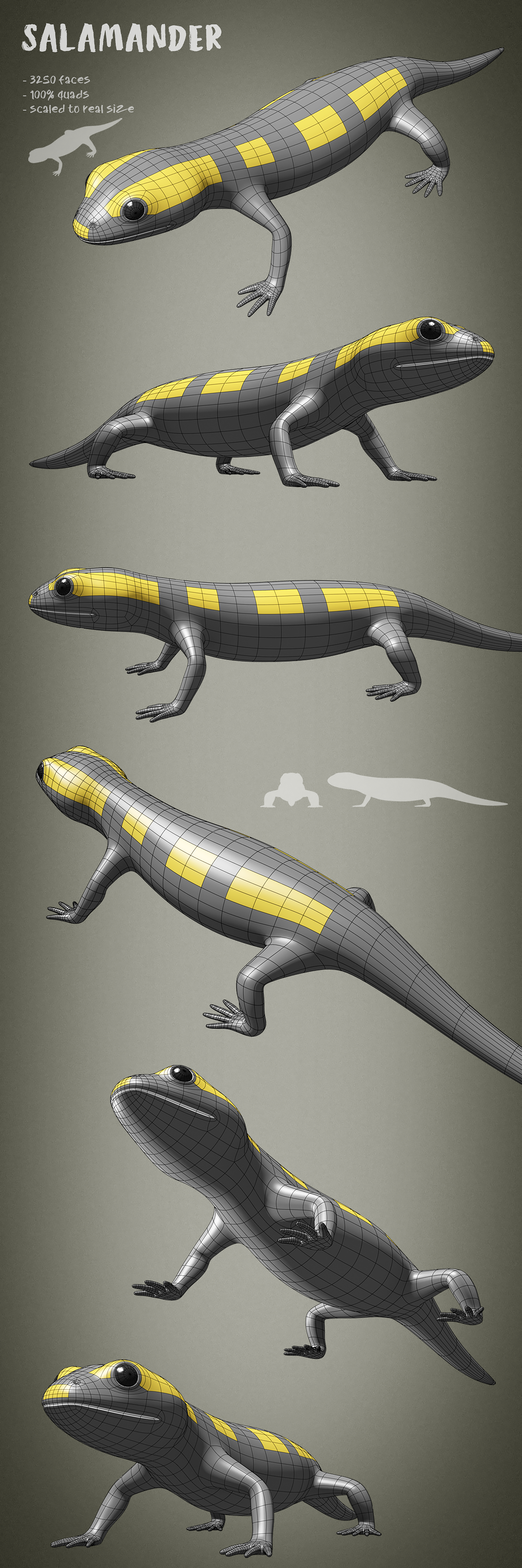 - uniform number of loop cuts in each model (8 for ears, legs, eye sockets, and tails, 24 for a body)