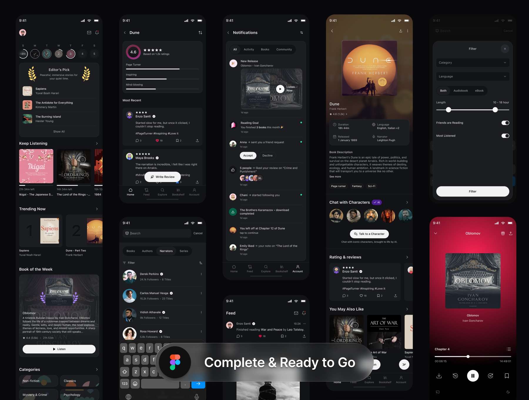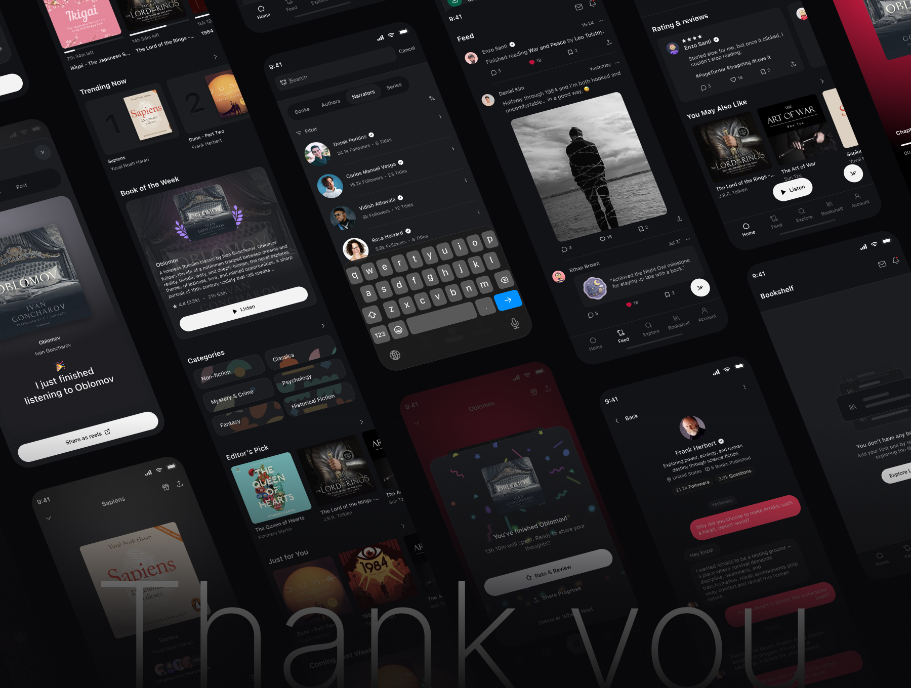 Perfect for audiobook platforms, media apps, or any project blending content, community, and personalization.