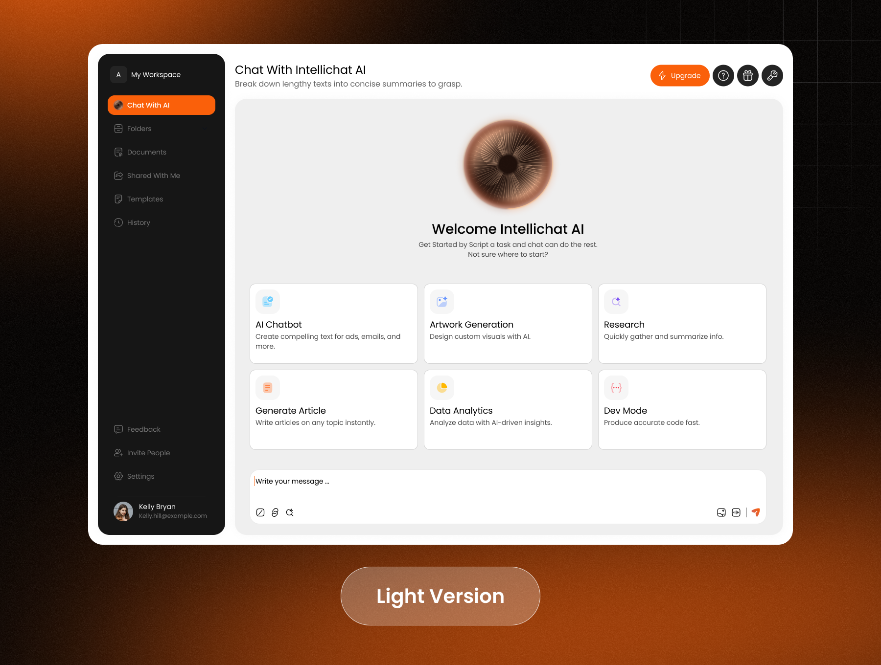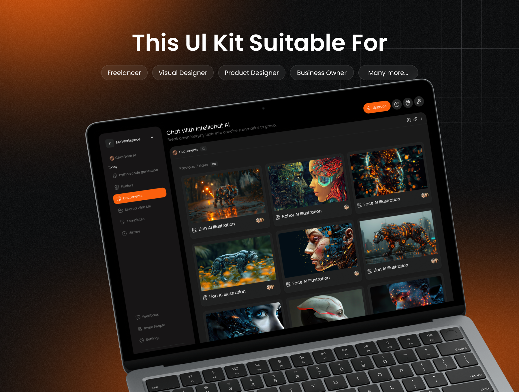 Intellichat is a modern and powerful AI Smart Chatbot SaaS Dashboard UI Kit, crafted for building intelligent chatbot platforms, and AI-driven communication tools. Designed with clean layouts and intuitive navigation, Intellichat helps you design SaaS products that feel both professional and cutting-edge.