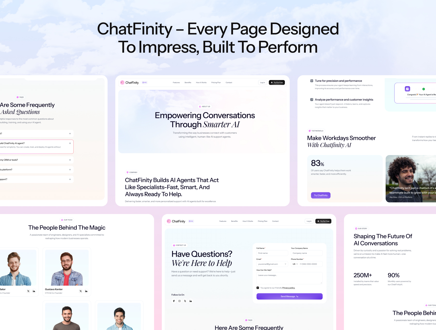 Whether you're designing a product website or building a client project, ChatFinity saves time and elevates design quality with every screen.