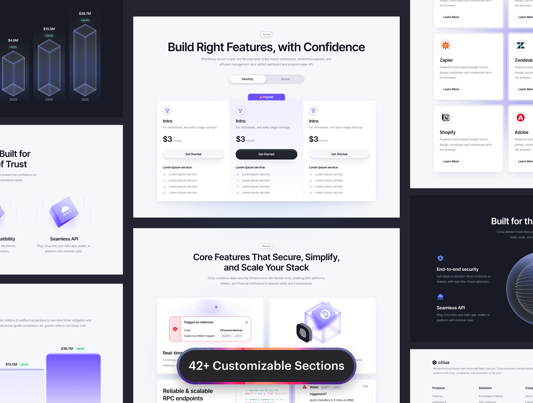 Designed for SaaS Projects like Web3, Crypto & Blockchain, SaaS, and more, Cirius is versatile and easily customizable to fit your project's unique requirements.
