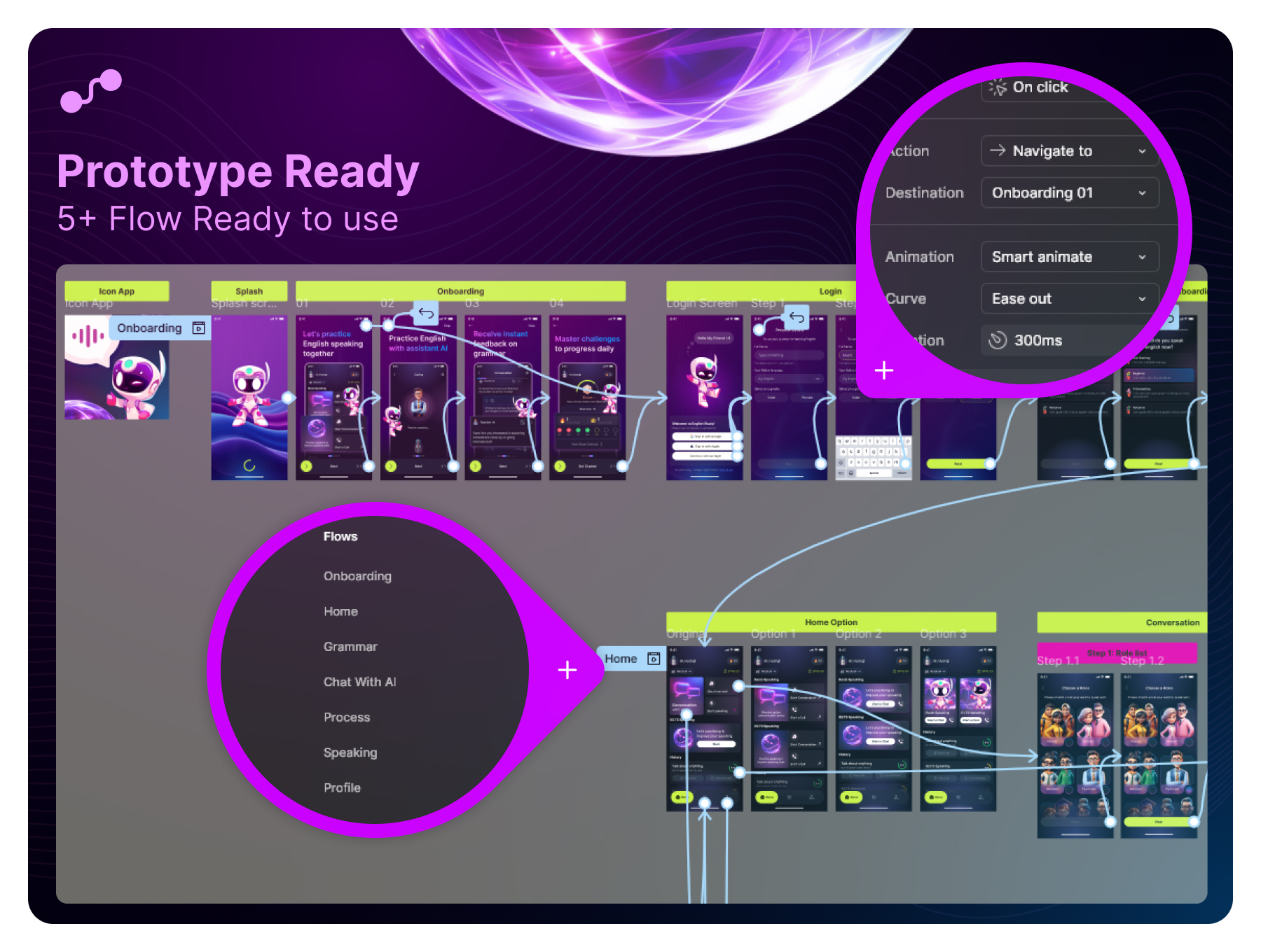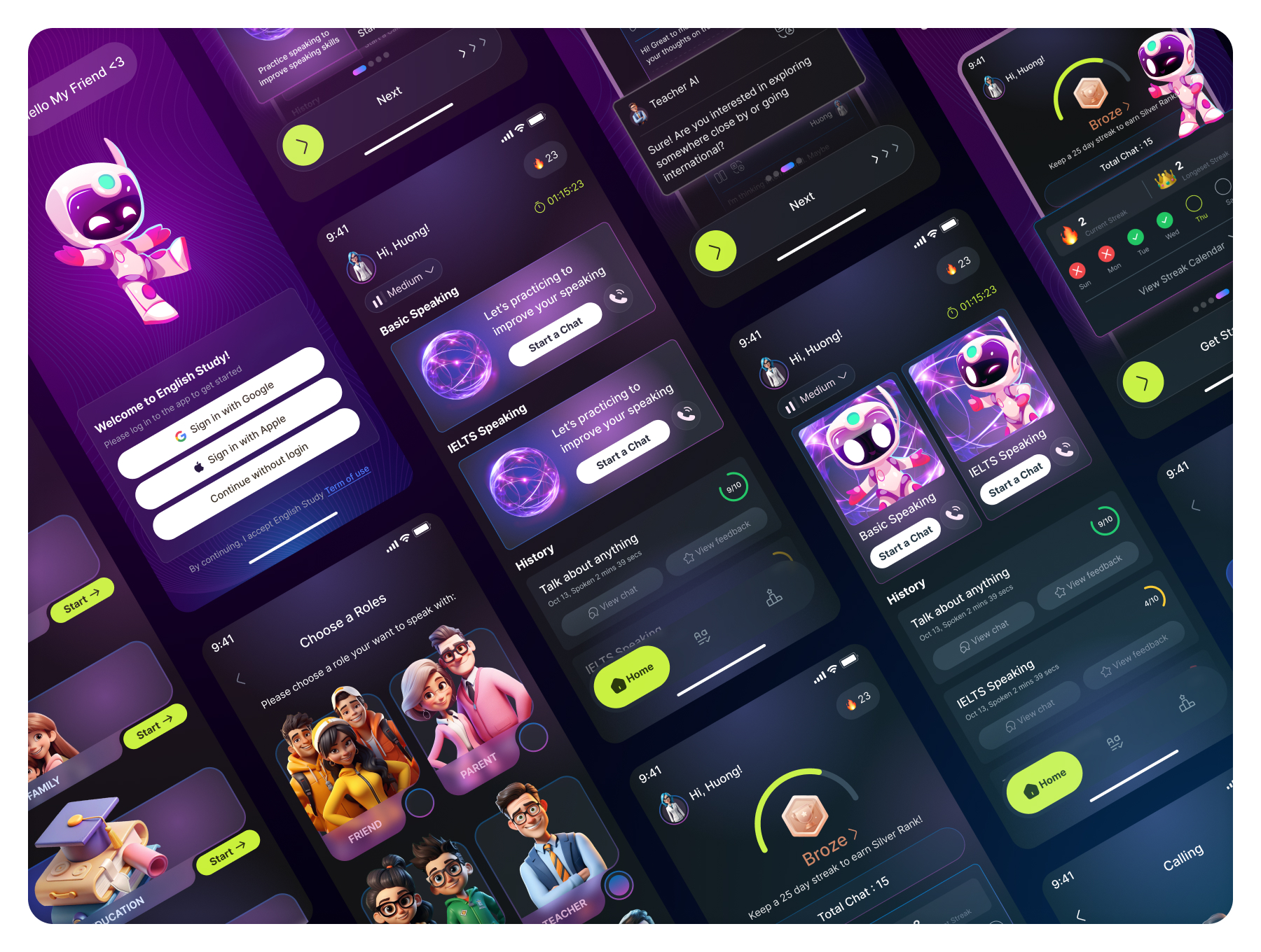 - 80+ Premium Screens – Covering learning flows, progress tracking, voice practice, and user dashboards.