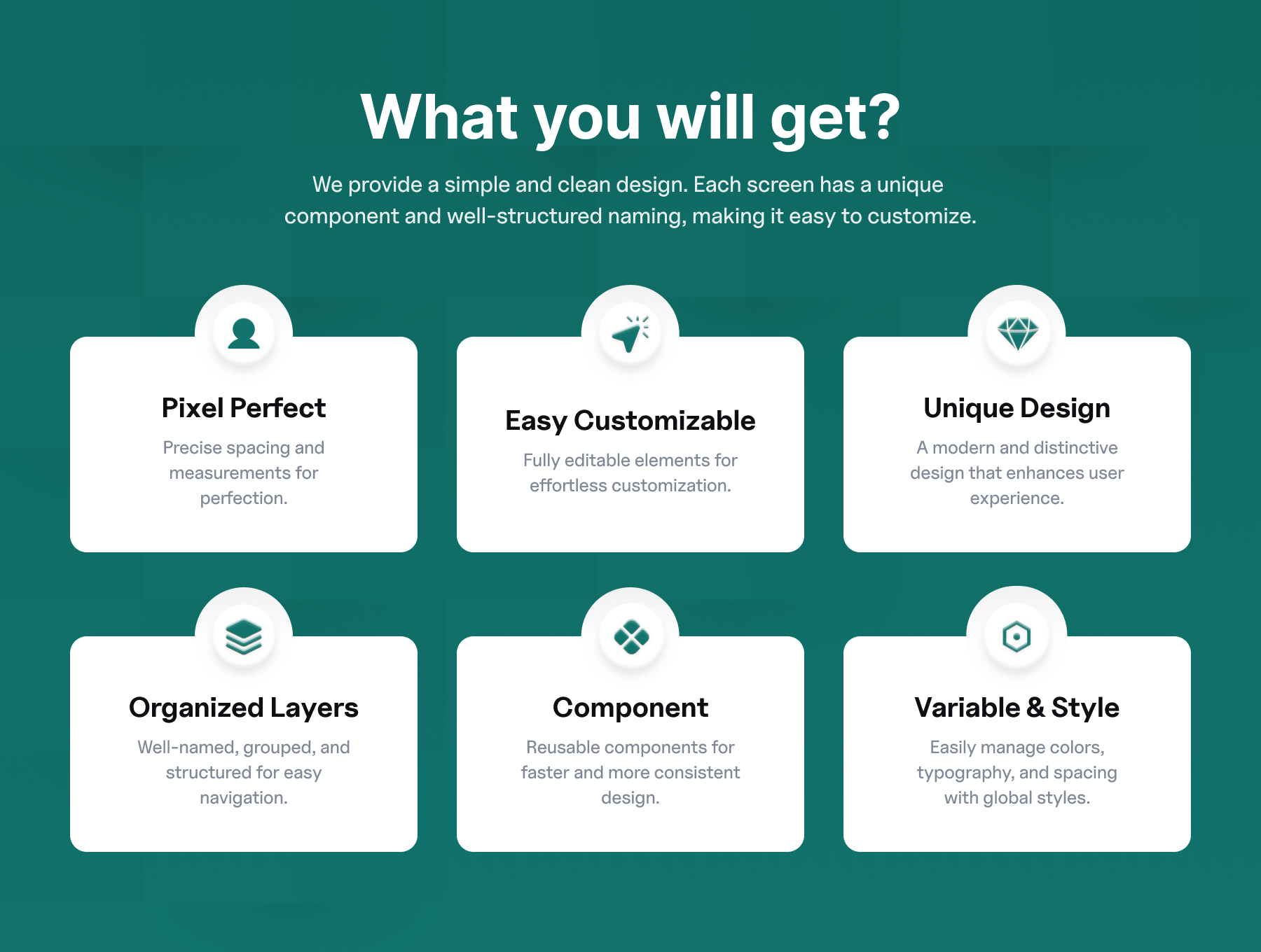 Ideal for designers and product teams developing financial applications. Fintrack emphasizes clarity, ease of use, and aesthetic harmony. With its clean design and well planned structure, this UI kit helps you deliver a reliable and aesthetically pleasing digital experience with confidence.