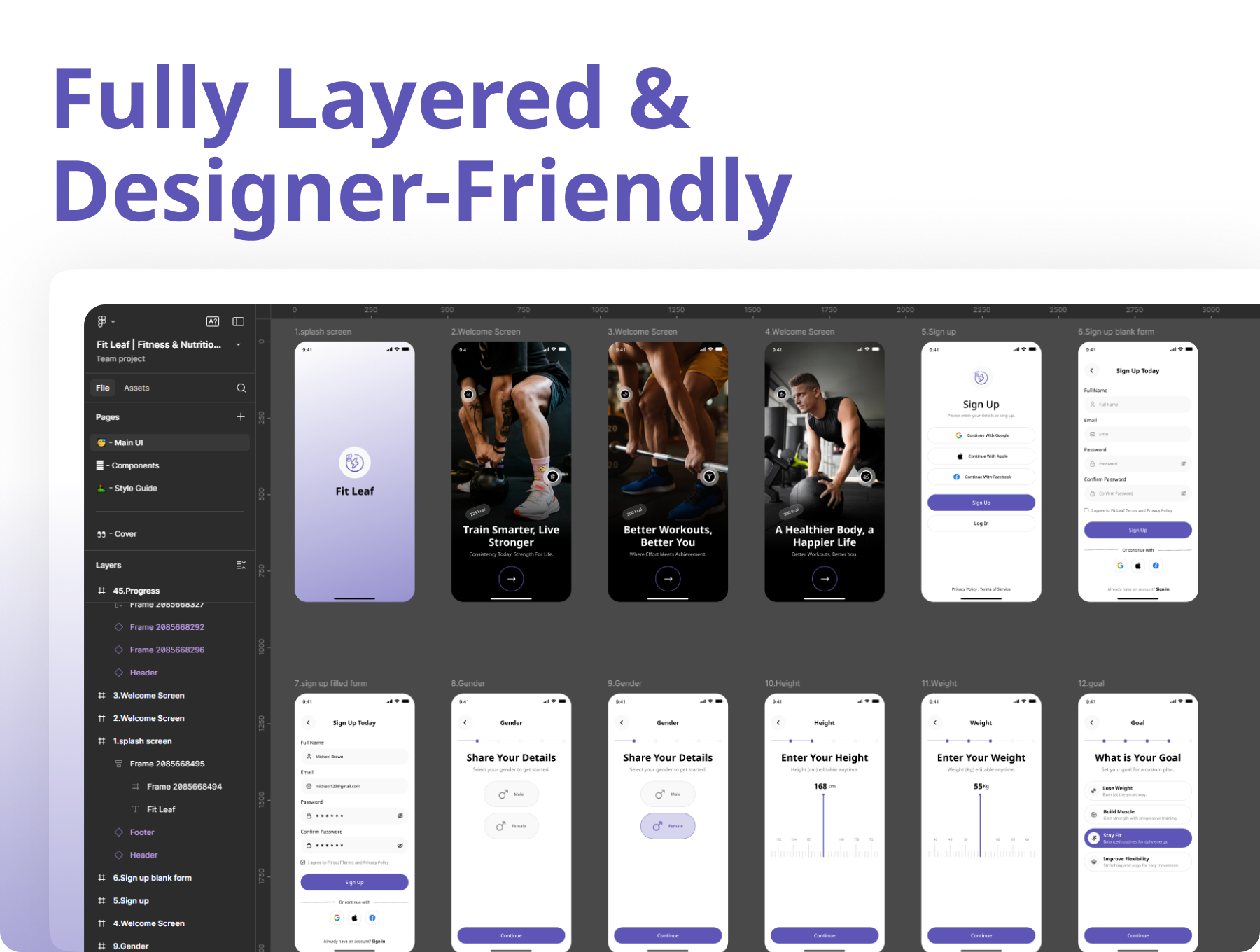 Fit Leaf isn’t just another fitness template—it’s a complete design system for health & wellness apps. Unlike generic UI kits, it’s tailored specifically for workouts, nutrition, and community features.