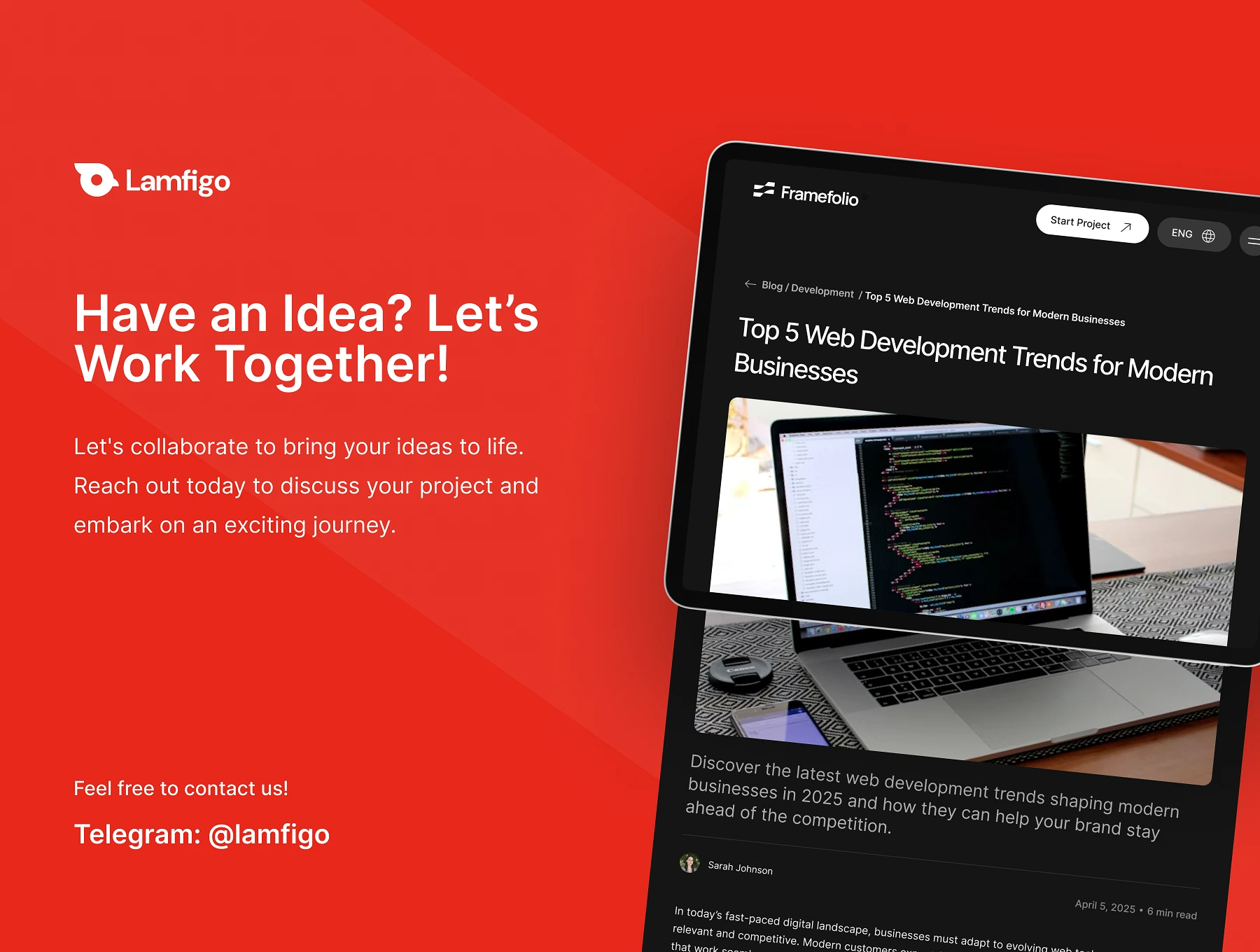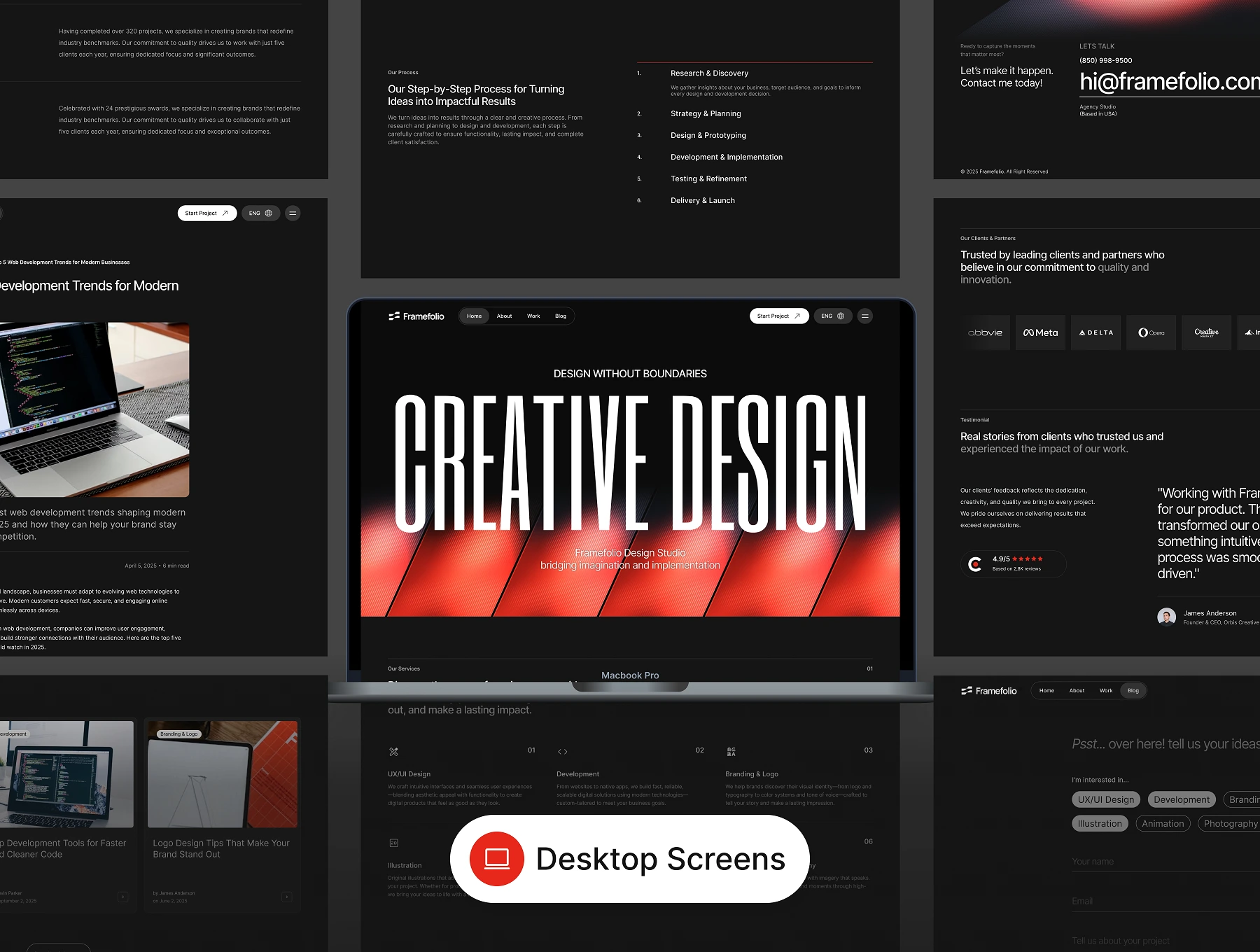 Introducing Framefolio – Digital Agency Website UI Kit, a complete design solution built in Figma to help creative teams, freelancers, and digital agencies design professional, responsive websites faster than ever. With modern aesthetics, well-structured components, and clean layouts, Framefolio makes it easy to craft seamless user experiences across desktop, tablet, and mobile.
