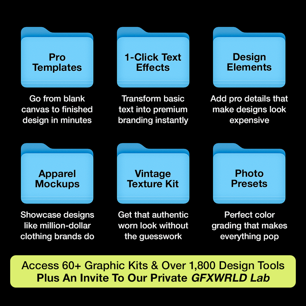 Over 60 specialized kits with 1,800+ tools and presets - each one dialed in by industry veterans who've created designs for the biggest brands in the world.