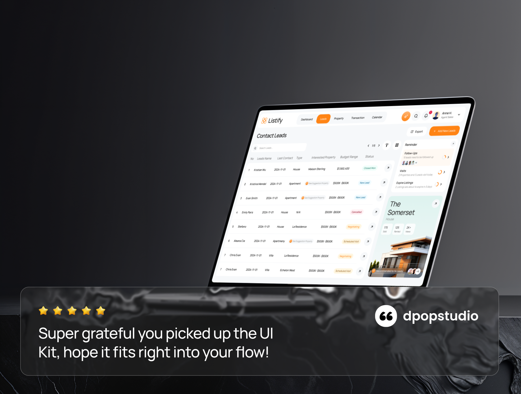 [VIP] Listify: CRM Real Estate Dashboard UI KIT