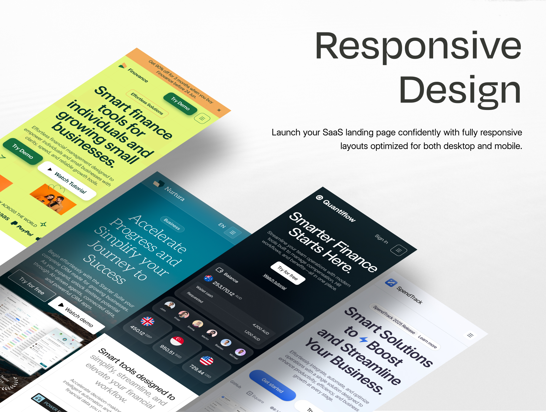 From finance to productivity, every layout is built to help you launch faster and customize easier, giving your brand a modern, minimalist touch that performs beautifully across desktop and mobile.