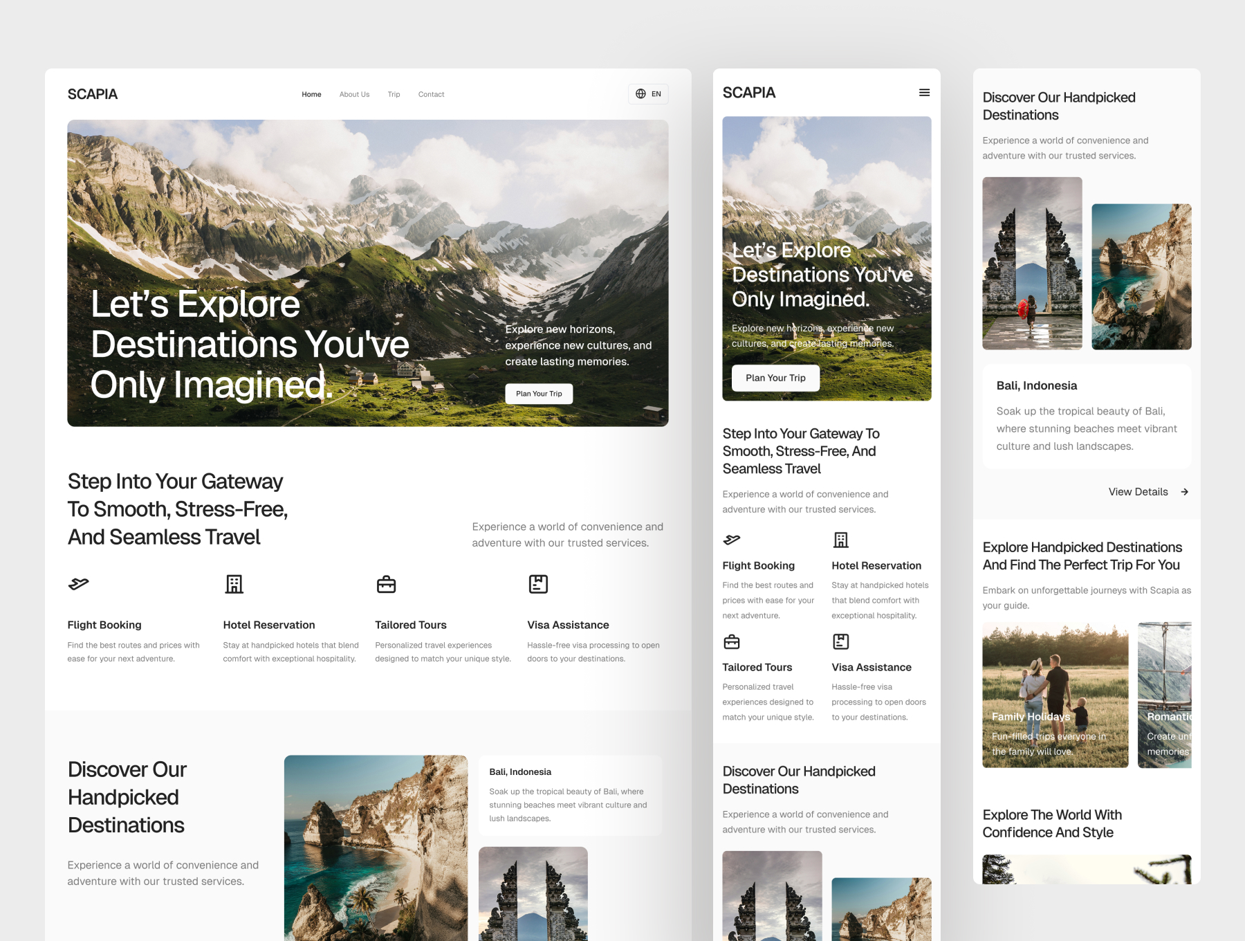 Scapia combines elegance with functionality to offer a seamless travel browsing experience.