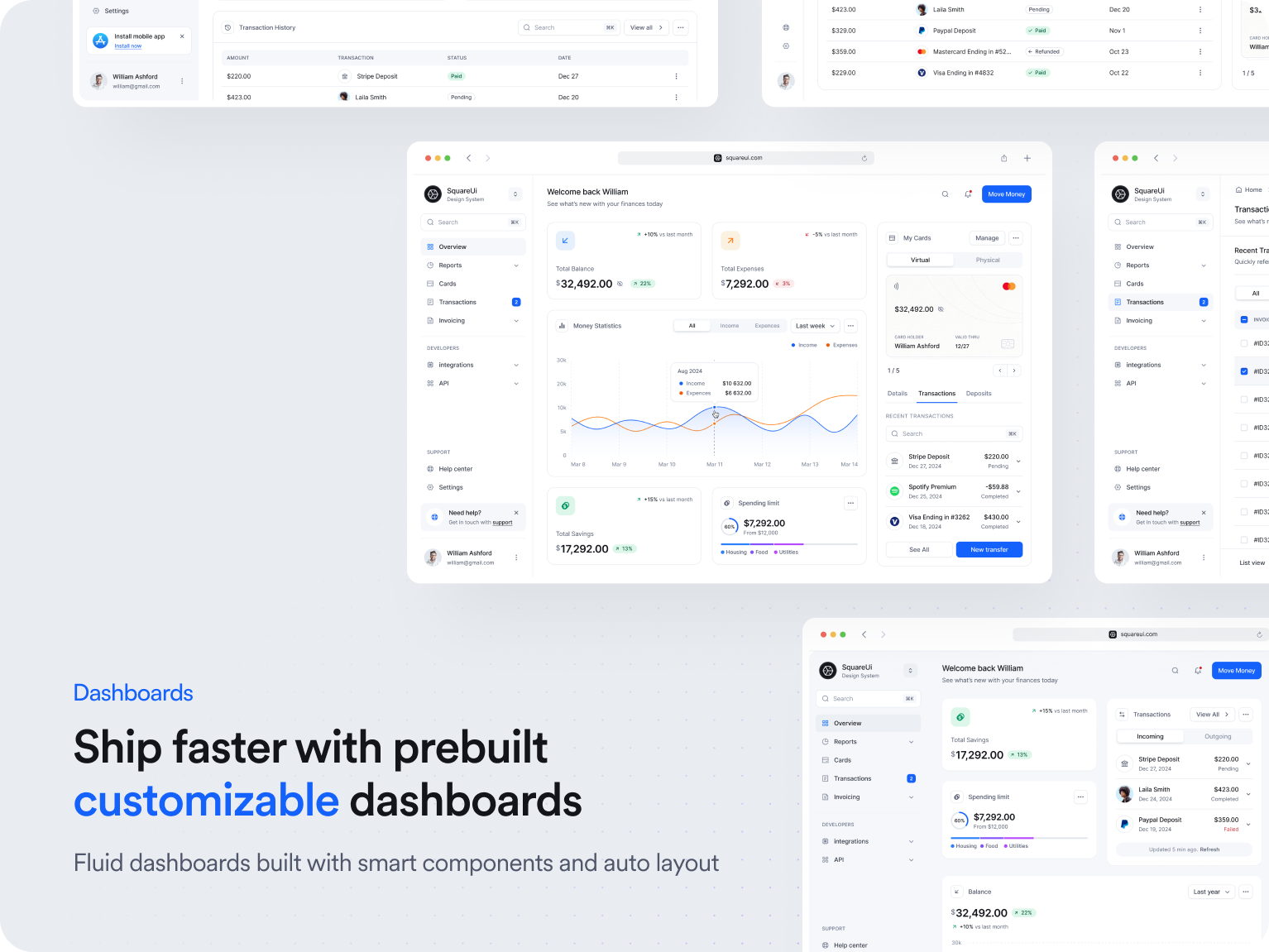 - Build Faster - SquareUi helps you skip the setup and jump straight into design. All components are ready to use and well-organized.