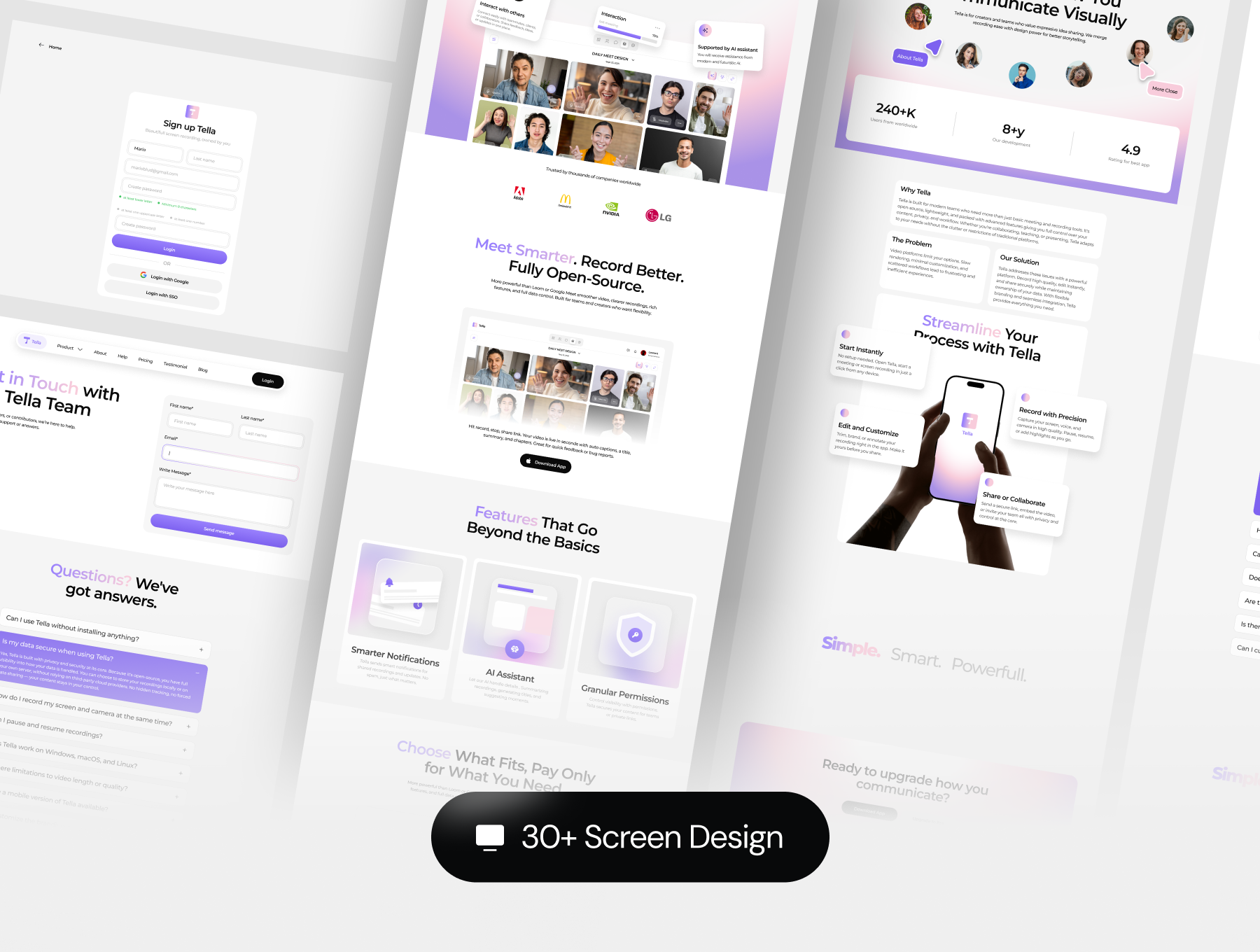 Perfect for modern SaaS platforms focused on video, collaboration, and simplicity, Tella empowers you to build cleaner interfaces, communicate smarter, and launch faster with style and precision.
