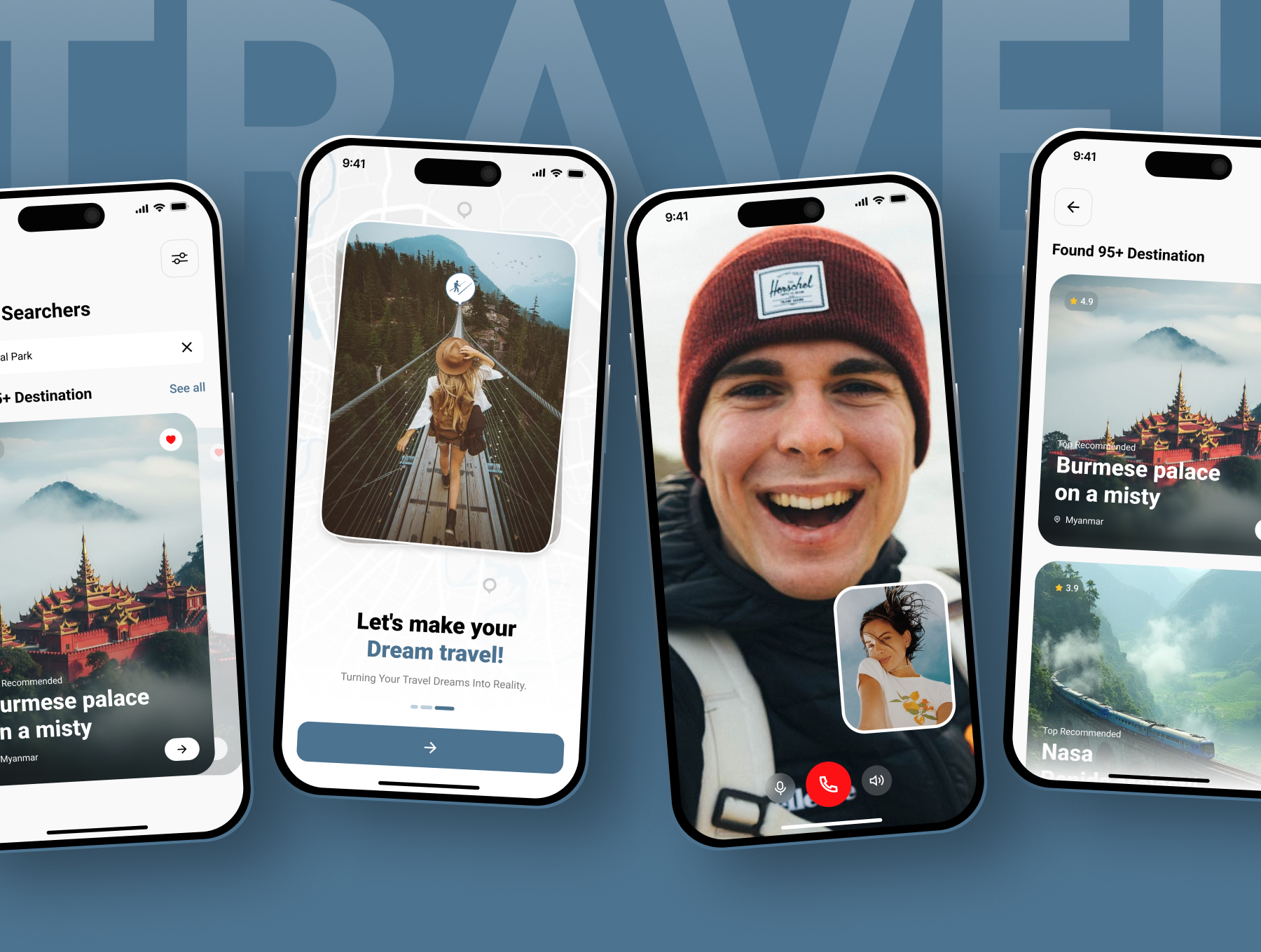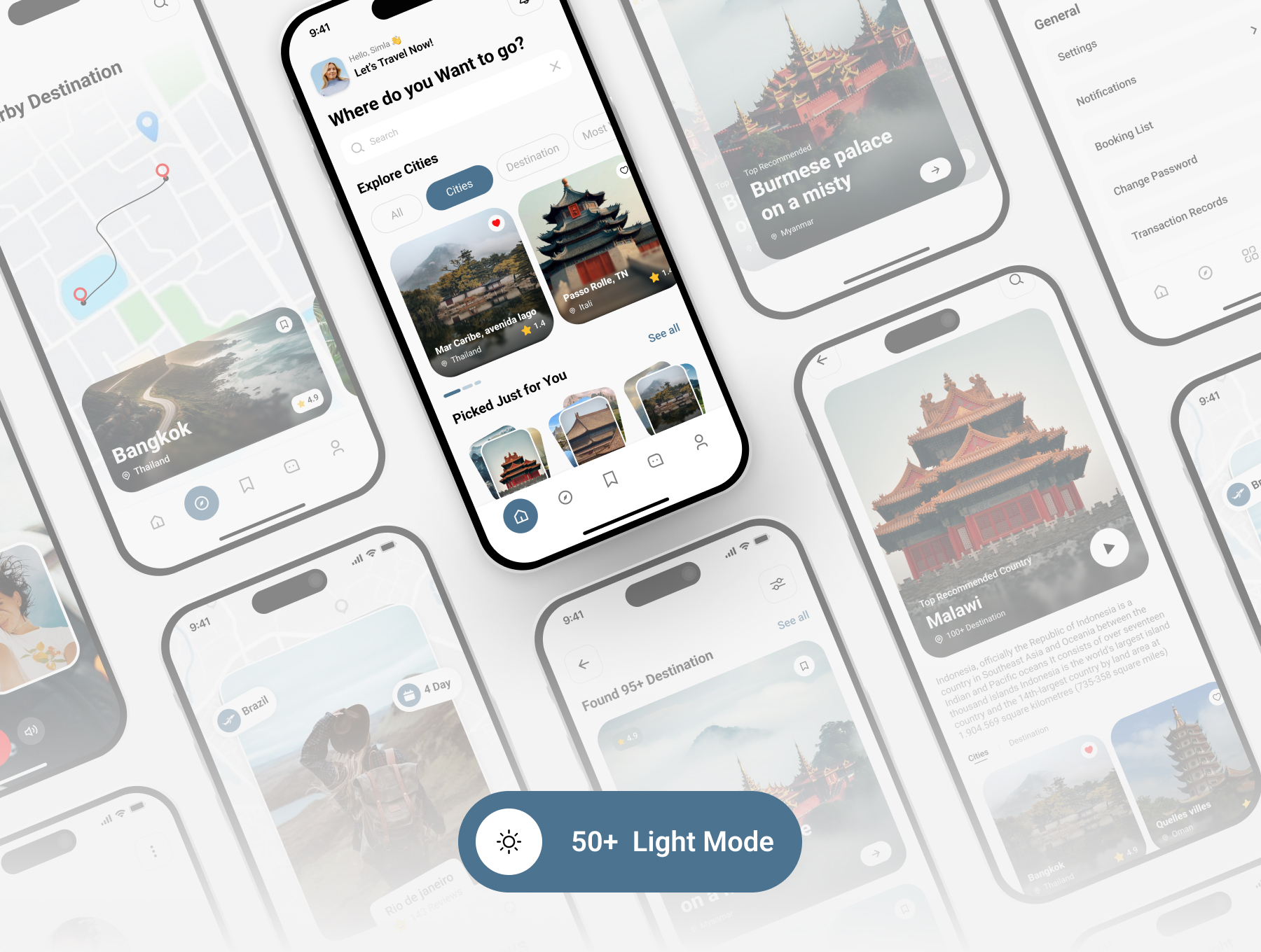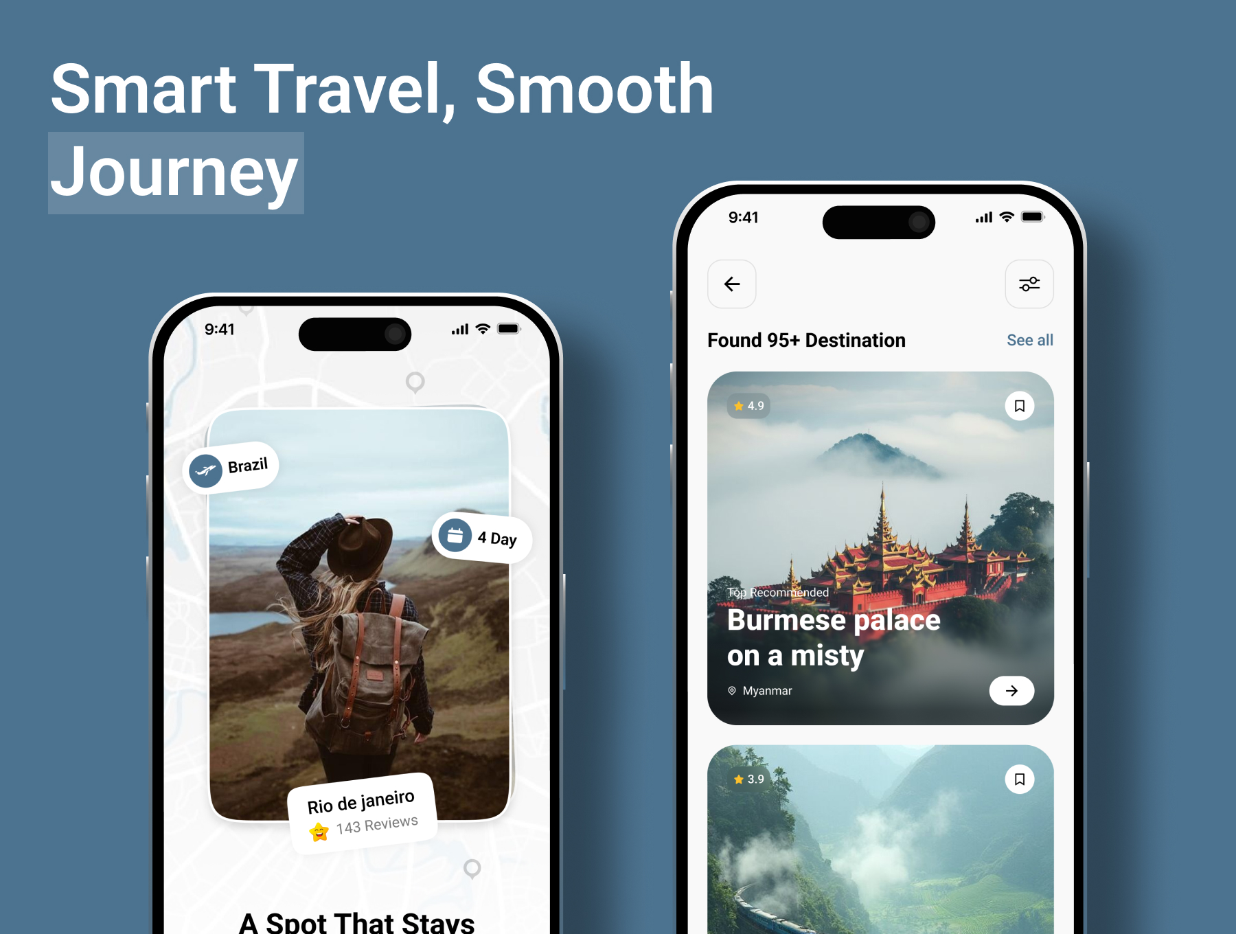 Plan adventures, discover places, and book trips with this modern travel app UI.