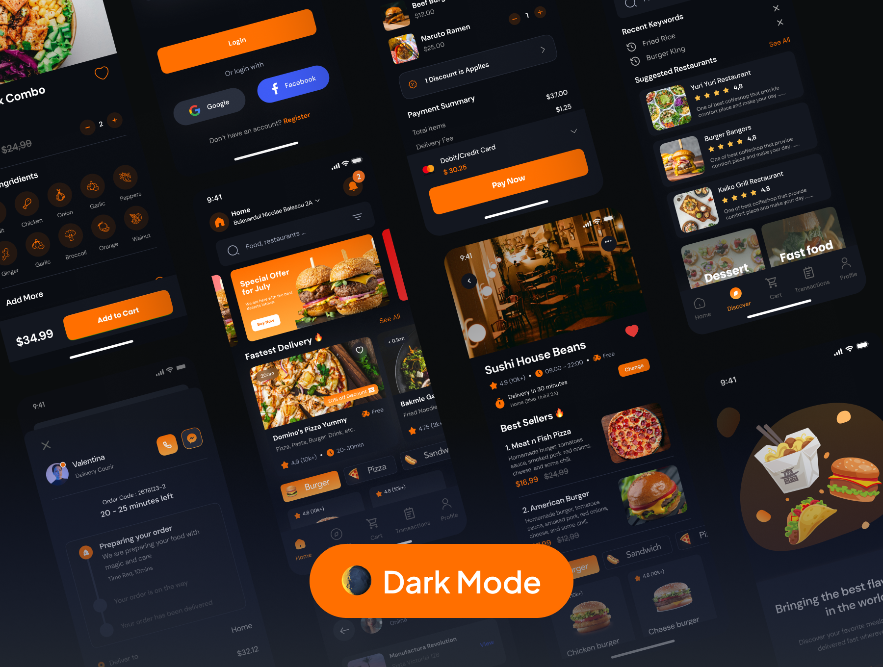 This is Food Delivery Mobile App UI Kit with 110++ premium-quality screens with clean, neat, and modern design. Available Light & Dark theme in Figma.